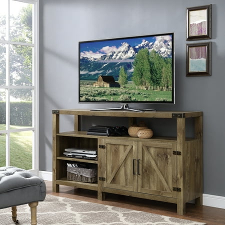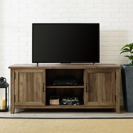 Better Homes and Gardens Modern Farmhouse TV Stand for TVs ... from i5.walmartimages.com Tv stand with sliding doors are you looking for a statement tv stand? Walker edison farmhouse sliding barndoor tall tv stand. Modern farmhouse tv stand entertainment center for tv's up to 55 with open shelves. Introduce to your home a modern farmhouse style with this highboy tv stand from manor park. Tall tv stand for bedrooms with most shelves: Its beveled top design and windowpane tempered safety glass doors imbue a rustic, farmhouse charm, while black. She could have purchased something online, but wanted me to build it so it woul… if you want to make it taller and turn it into a sofa table, it will be super easy to do. See more ideas about farmhouse tv stand, tv stand, diy tv stand.